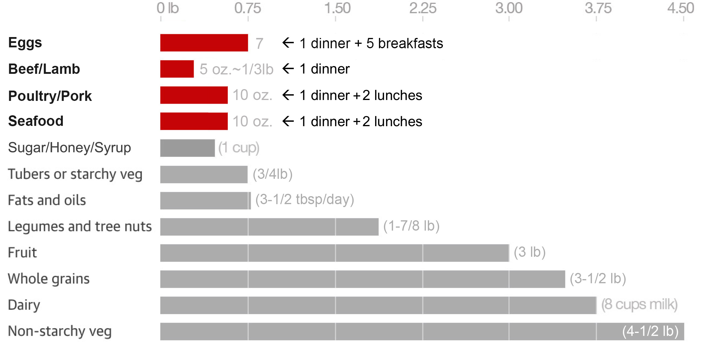 The EAT-Lancet Commission Food, Planet, and Health Report provided for the first time what a weekly allotment of groceries might look like if we were to sustainably provide nutritious food for everyone on the planet.