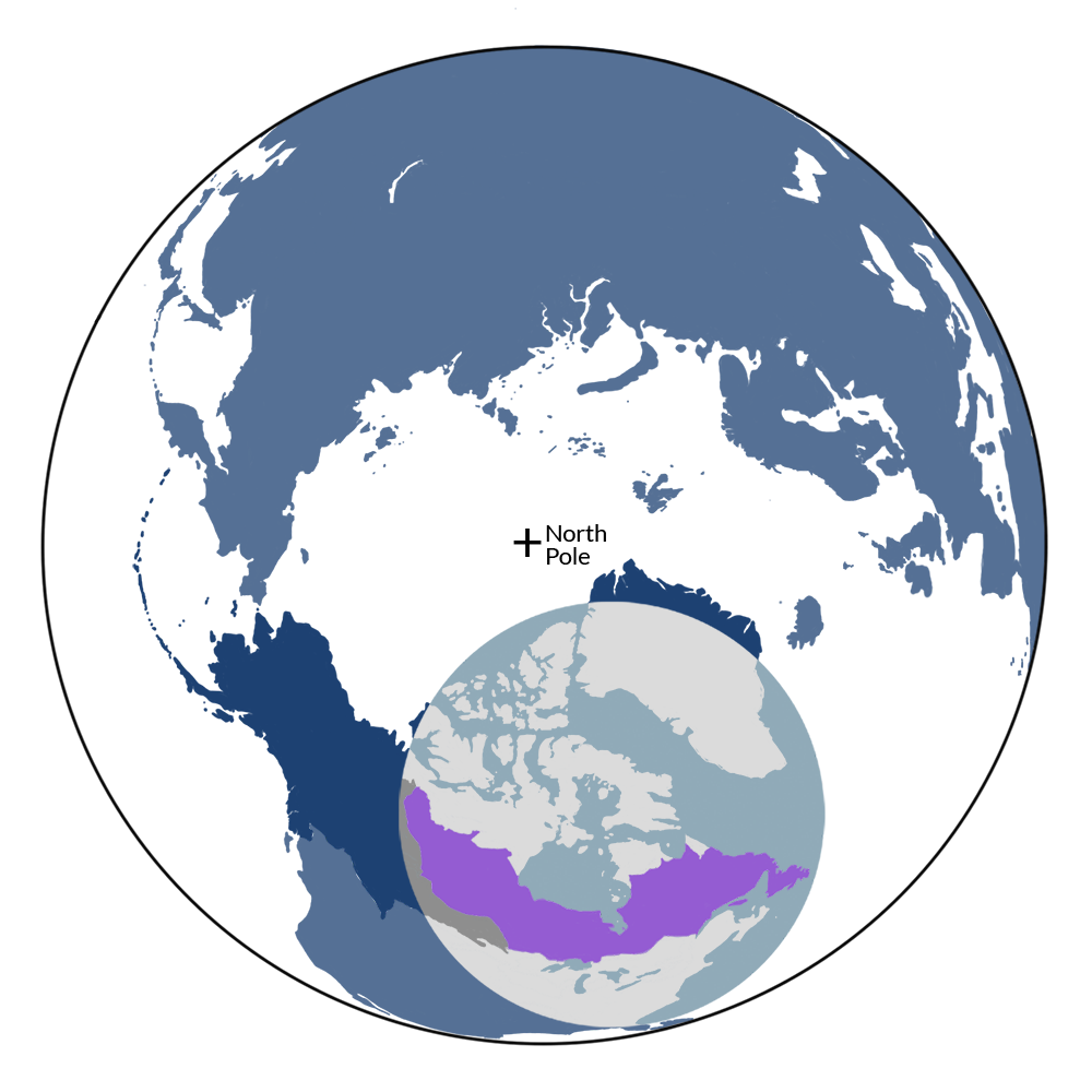 The polar bear is the iconic species of the Canadian Shield & Coastal Taiga-Forests Bioregion (NA9) located in the Canadian Boreal subrealm in the Subarctic America realm.
