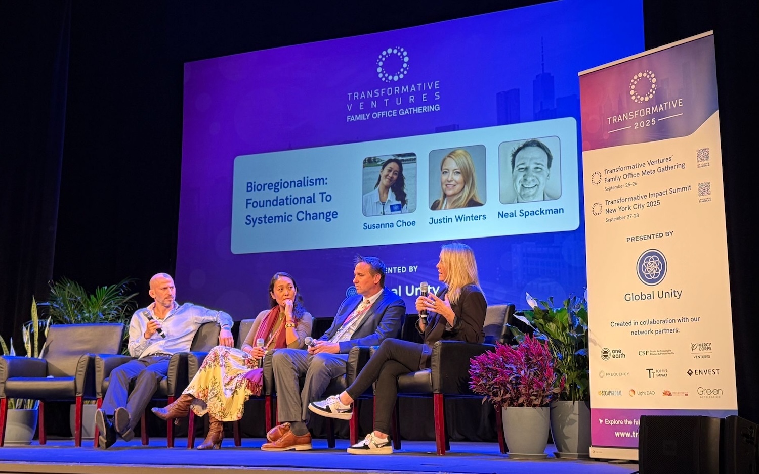 Justin Winters delivered a keynote on the climate finance landscape and joined a panel on bioregionalism, underscoring the importance of systems-level change.