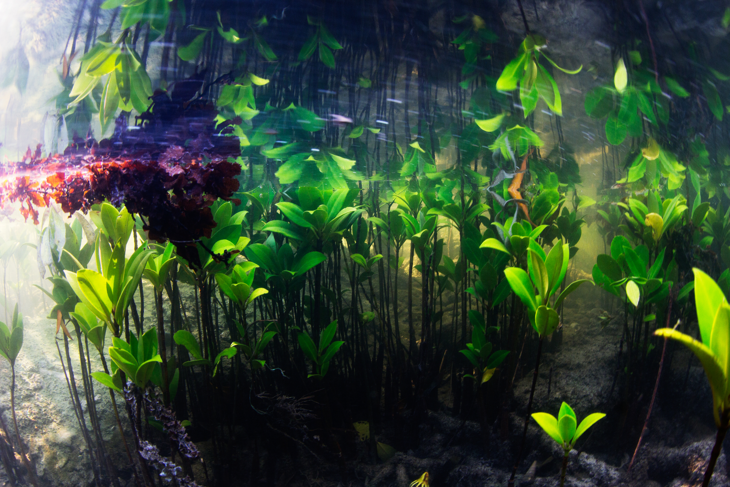 Underwater view of mangroves. Image credit: Courtesy of Garth Cripps, Blue Ventures