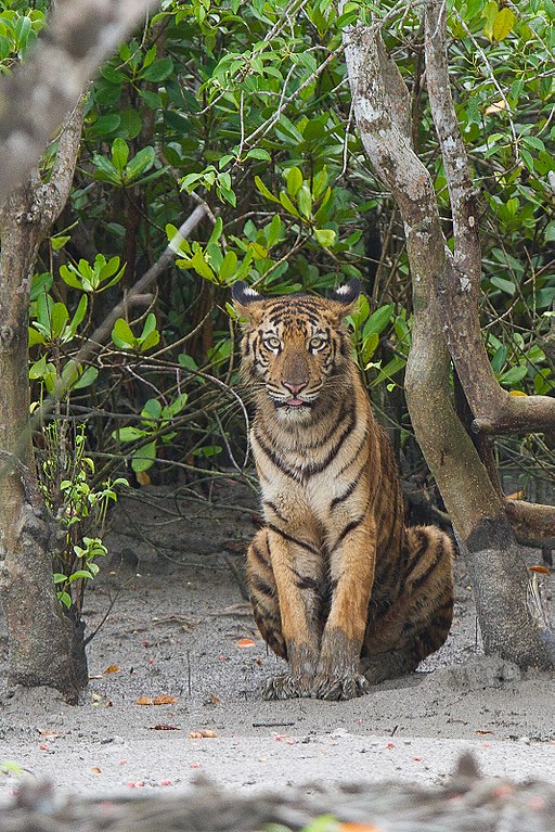 An adult male Bengal tiger in the Sundarban Tiger Reserve, West Bengal, India. Image credit: Soumyajit Nandy, Wiki Commons.